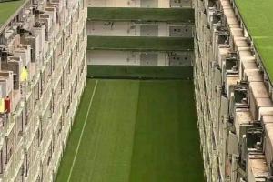 在球場下方有一個深達(dá)30米的地下空間,草皮通過可伸縮升降系統(tǒng)進(jìn)行存放和更換。