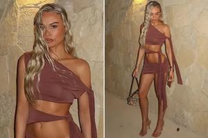 社媒照片中的康妮以一身亮眼穿搭驚艷亮相,讓粉絲為之傾倒。身穿一件挖空設計的連衣裙,露出腹部和一側(cè)肩膀。