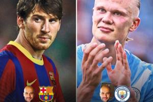 梅西在瓜迪奧拉執(zhí)教下,在西甲聯(lián)賽136場138球55助;哈蘭德在瓜帥執(zhí)教下,104場英超94球17助。