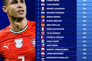 新世紀(jì)國(guó)家隊(duì)出場(chǎng)次數(shù)排行榜:C羅223場(chǎng)居首,梅西194場(chǎng)次之