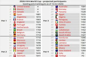 體育資訊10月15日訊 10月國際比賽日結(jié)束,距離世界杯12月抽簽只差2個(gè)月,各隊(duì)只剩11月國際比賽日能夠獲得積分。