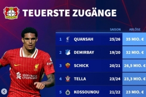 體育資訊7月3日訊 利物浦中衛(wèi)寬薩已經官宣轉會勒沃庫森,《轉會市場》統(tǒng)計顯示他也是藥廠隊史標王。