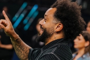 馬塞洛與老隊(duì)友克羅斯一起參加偶像聯(lián)賽活動(dòng),他展示了自己的轉(zhuǎn)球技術(shù),一旁的克羅斯投來(lái)贊賞的目光。