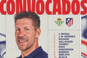 馬競(jìng)客戰(zhàn)貝蒂斯大名單:阿爾瓦雷斯、格列茲曼領(lǐng)銜,卡爾多索回歸