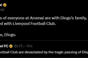 體育資訊7月3日訊 利物浦球員迪奧戈-若塔今天因車禍離世,阿森納隨后發(fā)文悼念。