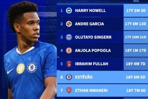 體育資訊10月30日訊 本輪聯(lián)賽杯完賽多場,切爾西和阿森納雙雙晉級,兩隊各有1位18歲小將破門。數(shù)據(jù)統(tǒng)計顯示,兩人分列聯(lián)賽杯最年輕進球榜第6和第7位。