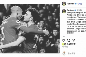 法比尼奧寫道:無(wú)言以對(duì)如此悲痛之日,至今仍難相信此事發(fā)生。我曾有幸與若塔這位了不起的人共處。兄弟,我們將會(huì)深深懷念你!愿上帝撫慰魯特(若塔妻子)的心、所有家人及每一位深愛(ài)迪奧戈與安德烈的人,愿他們安息。R.I.P. ????