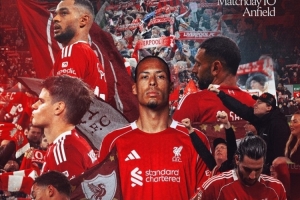 利物浦官方社媒發(fā)布了此役的海報(bào),范戴克、?;倏恕⑺_拉赫、索博斯洛伊、加克波、凱爾凱茲出鏡。