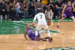 GIF-杰倫-布朗遭飛鏟,沒(méi)有被吹犯規(guī)